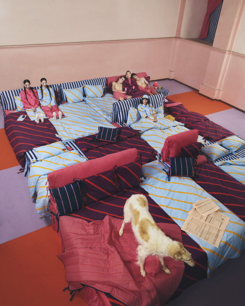 What happens in bed? Just about everything. Together, New York-based artist Laila Gohar and Marimekko celebrate the softer side of life—and its epicenter, the bedroom. Inspired by all the things we do in bed and Laila’s maxim if it’s ironed, you can wear it out, the capsule collection features a series of bedroom-themed items that Gohar curated for the design house featuring distinctly bold and contrasting Marimekko archive stripes by artist Maija Isola.